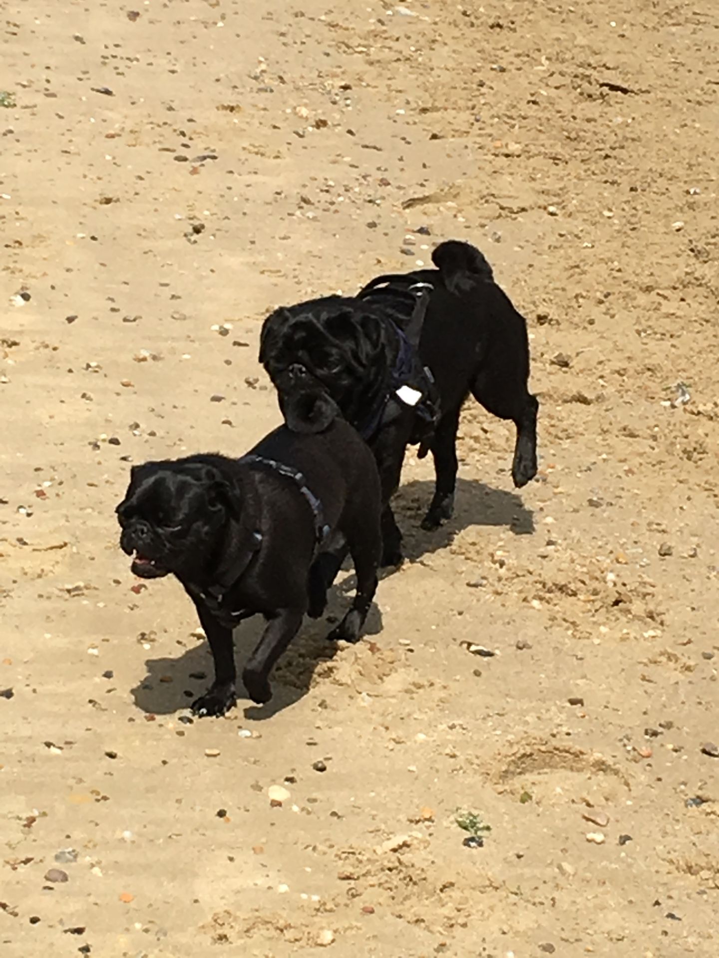 Am Strand habe ich dann gleich weitere Freunde gefunden. Loriot zum Beispiel. Ein ganz charmanter 4jähriger Mops-Gentleman aus Hamburg. Nordisch nobel sag ich nur, ganz mein Typ ?.